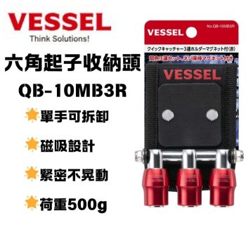 日本 VESSEL 附磁鐵 紅色 3連六角收納頭 快脫 QB-10MB3R